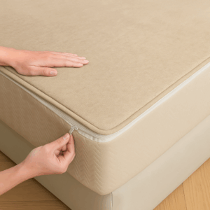 La funda de colchón con cremallera ofrece una protección completa contra el polvo y la suciedad, ajustándose fácilmente para mantener el colchón limpio y en perfecto estado.